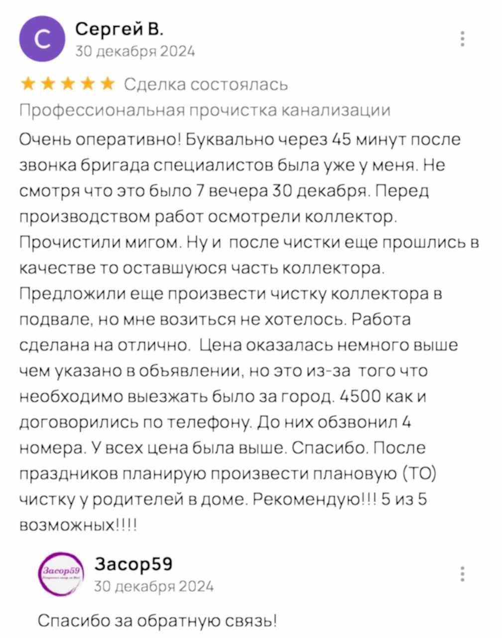 Отзывы о нас